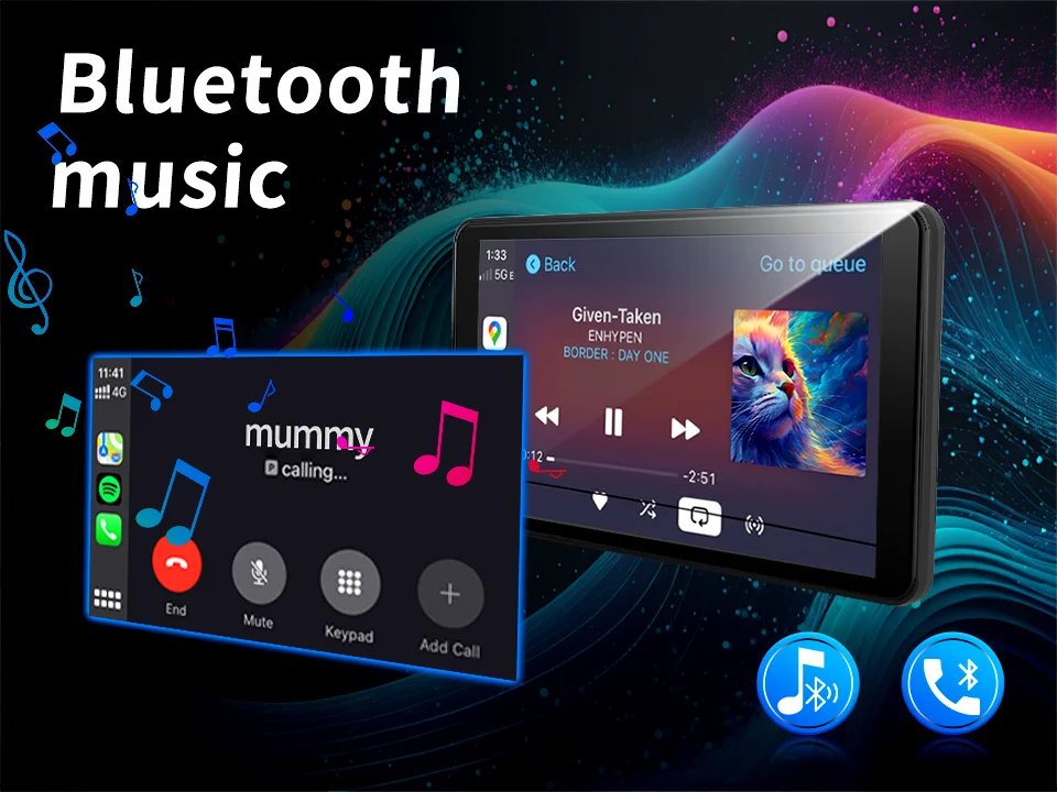 Connect phone with radio via Bluetooth, support hands-free calling, listen to music, and phone book function.