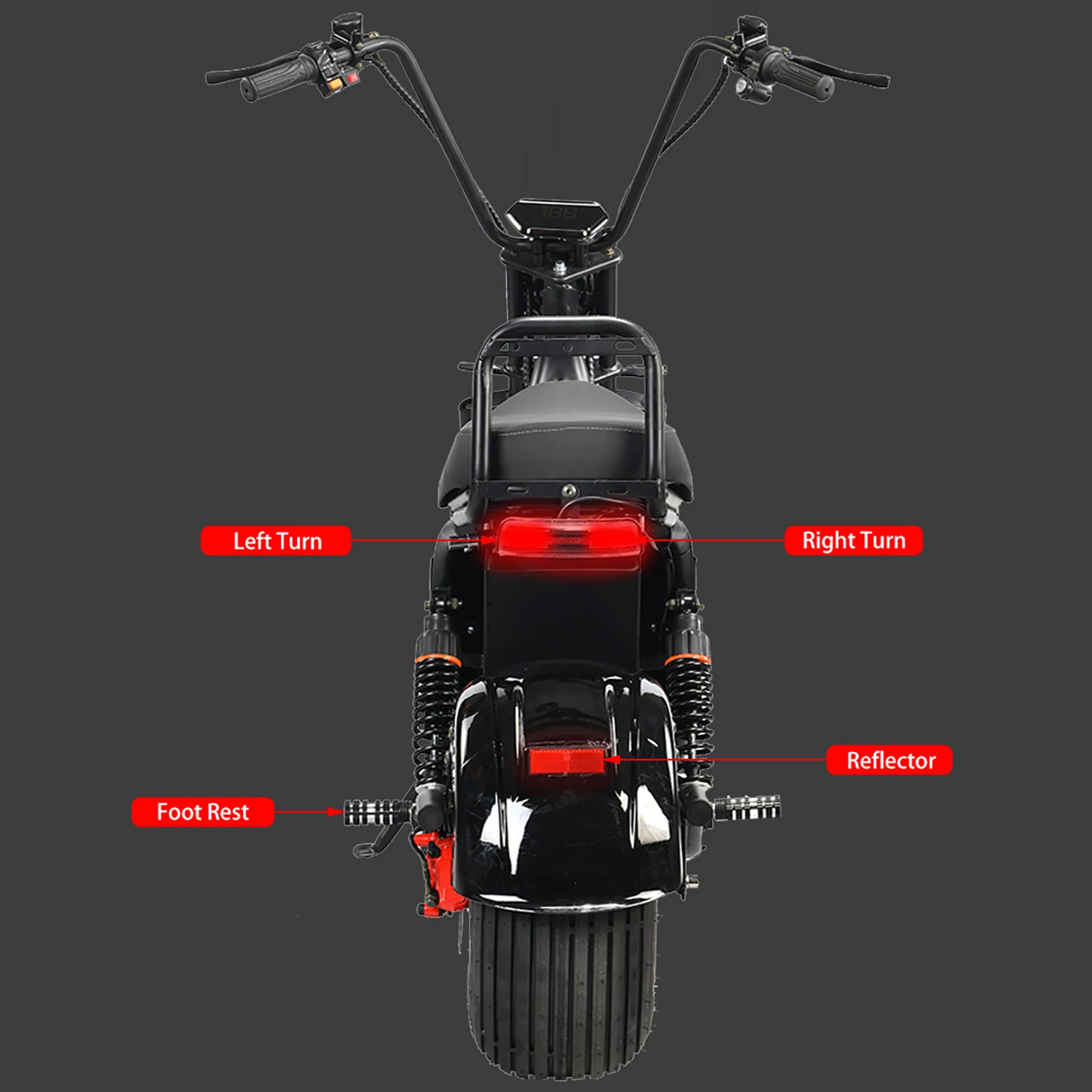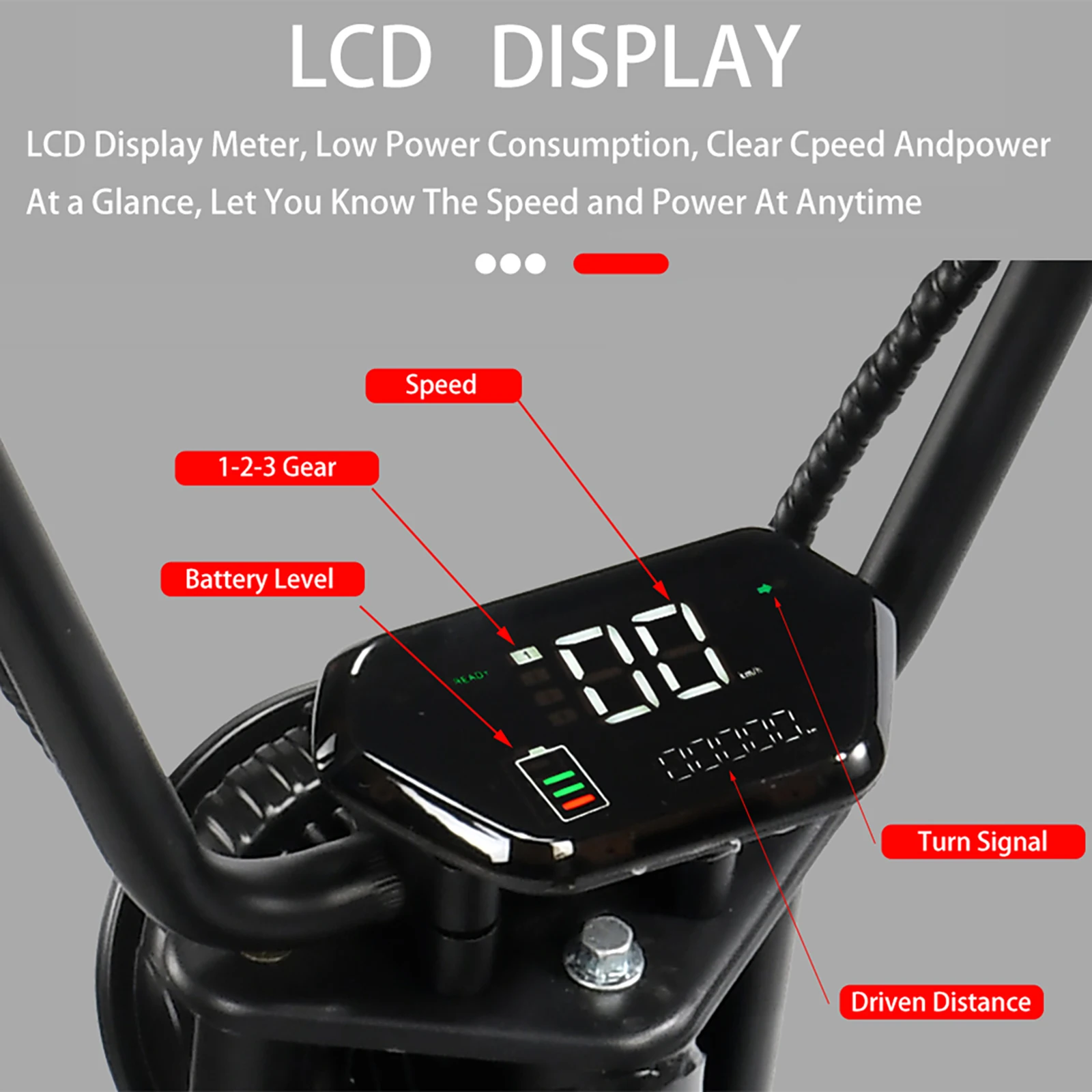 [High-brightness headlight and high-definition dial display] The LED headlight adopts a wide-angle lighting design, and the lighting range is wider and longer. The high-definition dial display can adjust the speed, check the remaining power, driving distance and other parameters.
