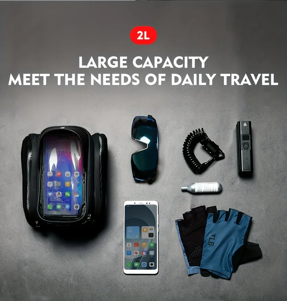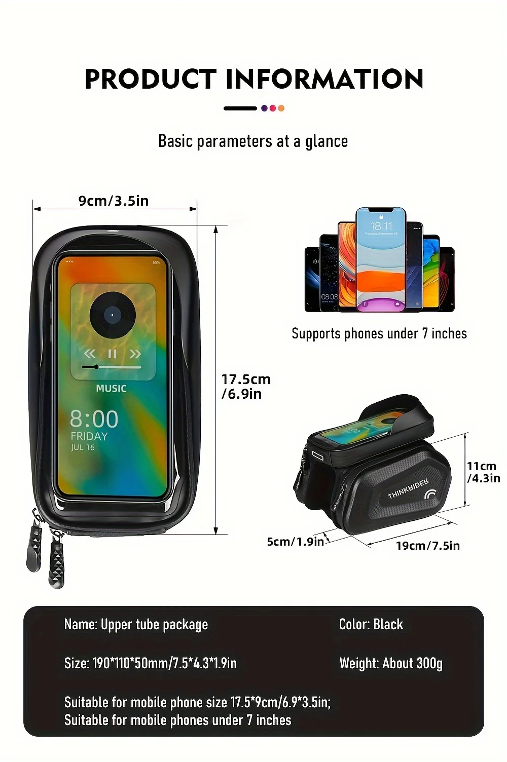 Bike Bag Frame Front Top Tube, Waterproof 7in Phone Case Touchscreen