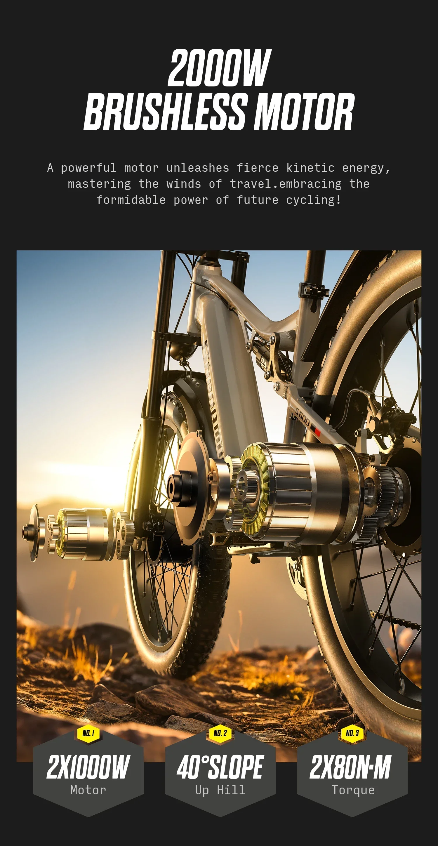 E-bike 2000W 48V, Hydraulic Brake ,shock absorption mountain off-road Electric bike