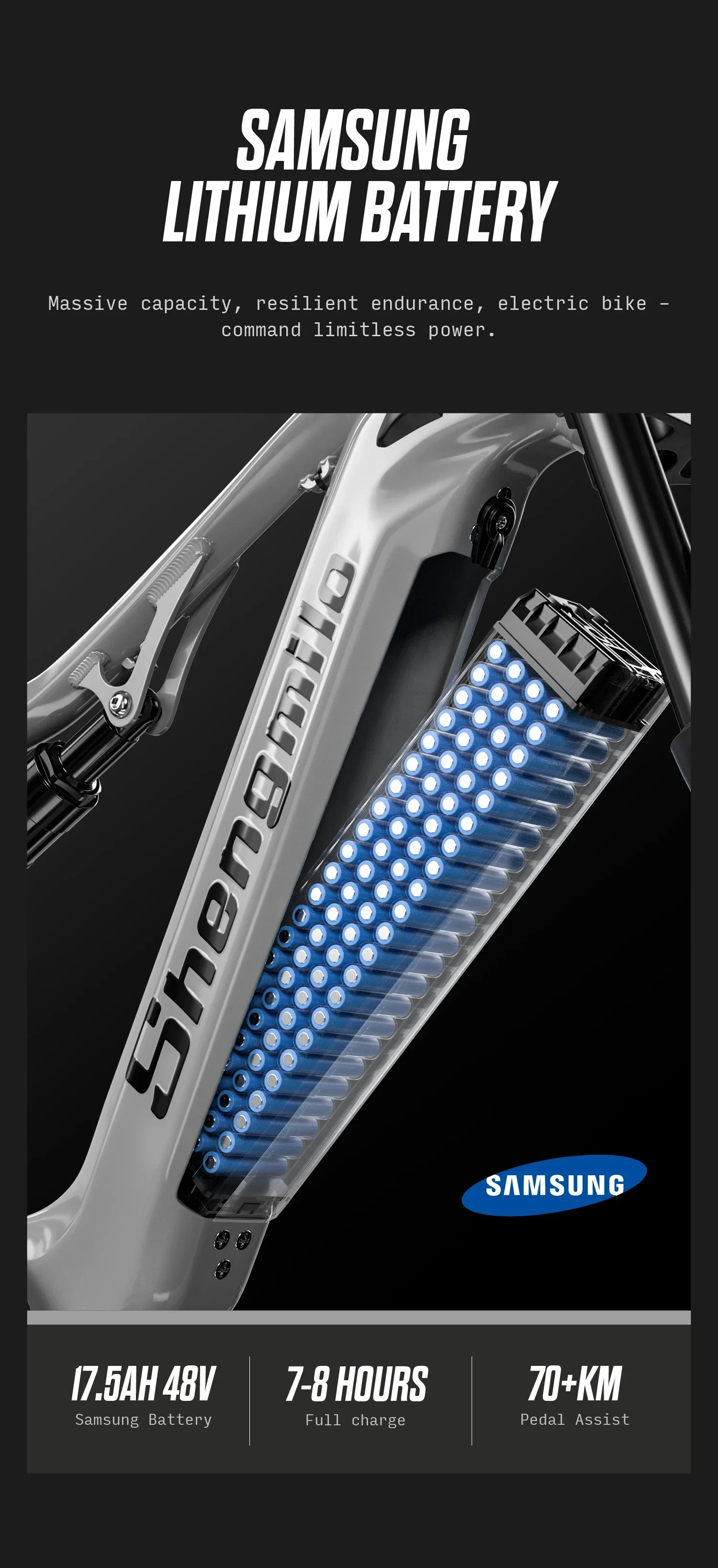 Battery: 17.5ah Samsung Battery