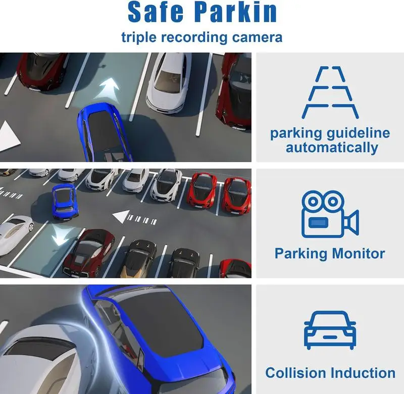 【 24H Parking Monitor】The dashboard will automatically turn on and start recording when a collision or bump is detected.24H Parking Monitor can record continuously for 24 hours in Parking Mode with time-lapse function. (Please note that the recorder will automatically power off when the engine is turned off, you need to provide your own step-down cable to connect to the car battery for power supply).