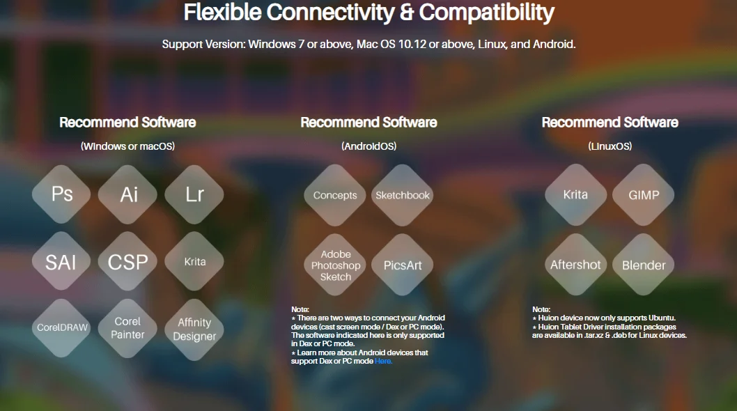 Work with Mac/Windows/Android: could work with Mac(MacOS 10.12 or later) and Windows computer(Windows 7 or later), plus, you can also connect it to your android smartphones and tablets with full-featured USB-C cable to release your inspiration whenever and wherever you want. Note:Your android device is supposed to support USB3.1 GEN1 or DP 1.2.