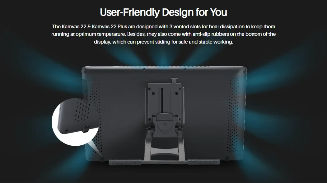 The Kamvas 22 is equipped with an anti-glare matte film, and the Kamvas 22 Plus is equipped with anti-glare glass.